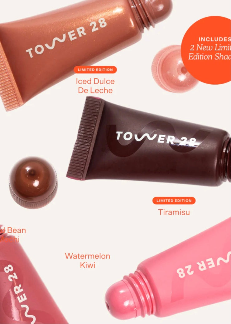 4 mini LipSoftie Tinted Lip Treatments, including two brand new limited edition flavors exclusive to this set—Tiramisu + Iced Dulce de Leche.