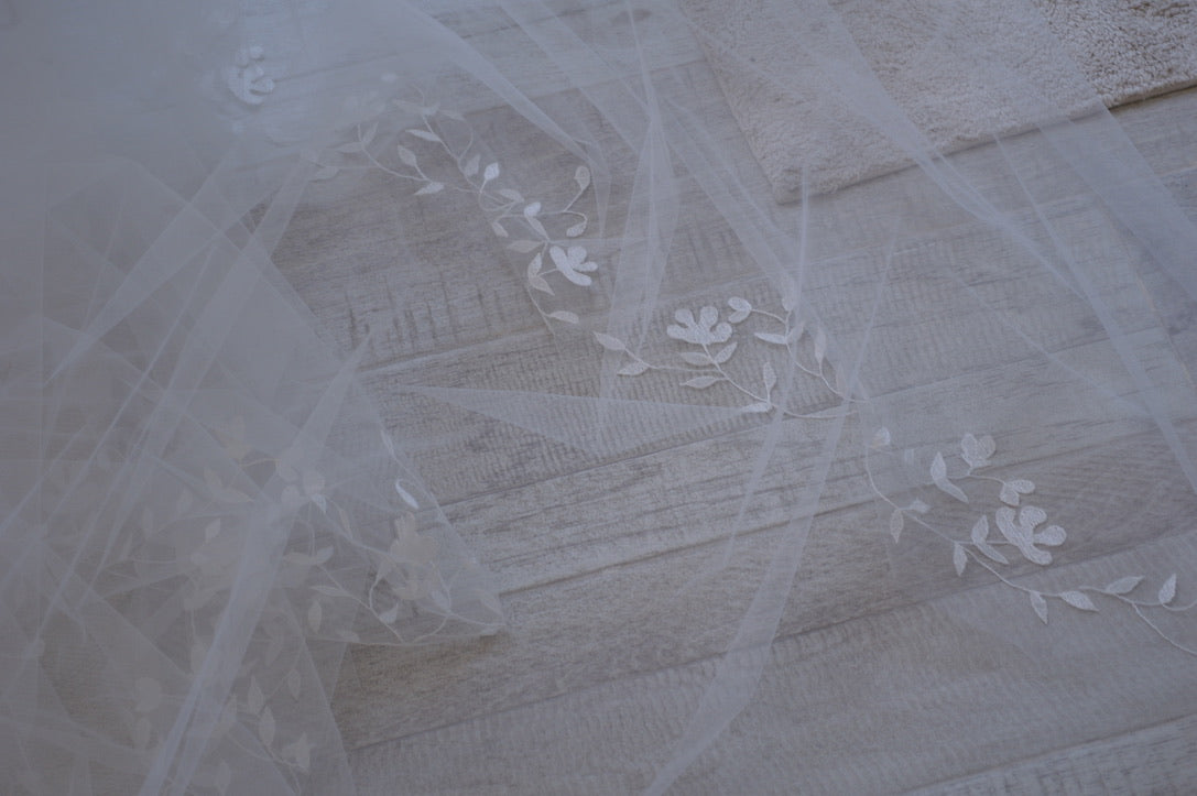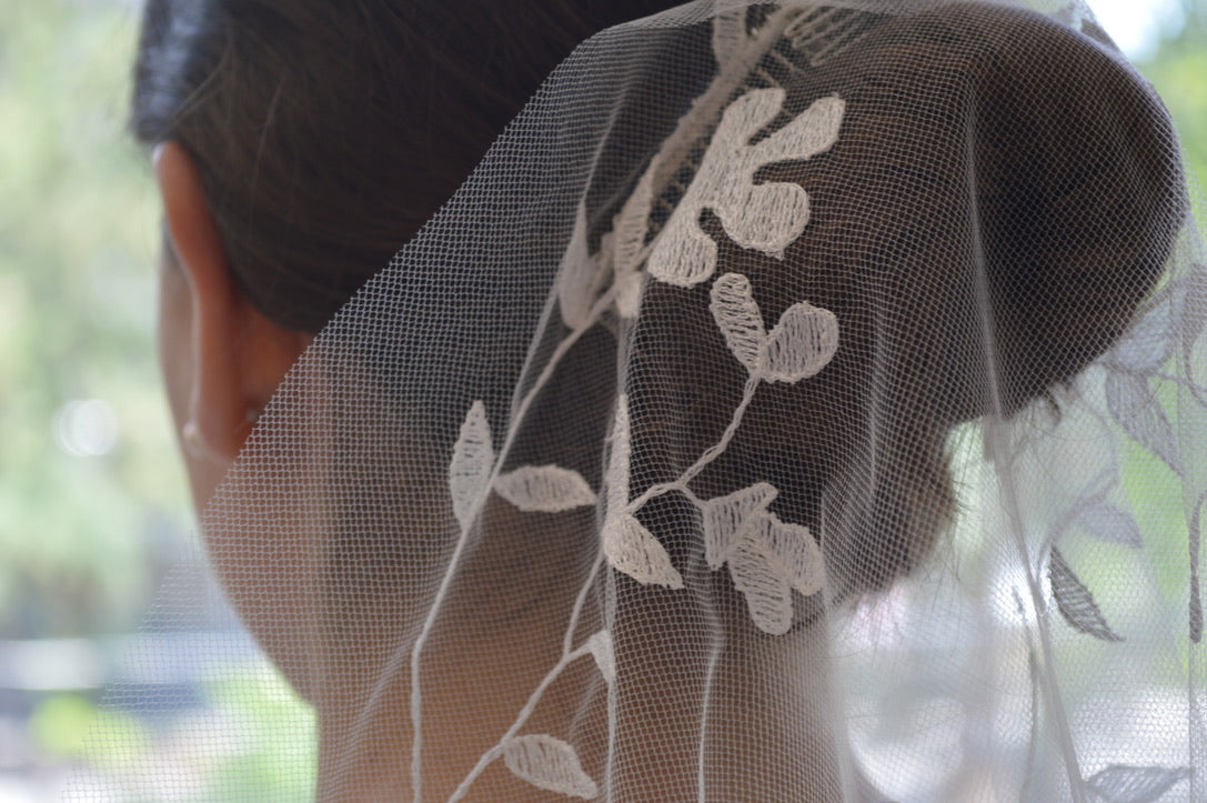 Velo bordado a mano.